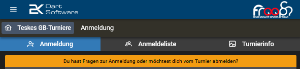 Über den Reiter Anmeldeliste könnt ihr die bisher angemeldeten Spieler sehen, im Reiter Turnierinfo wichtige weitere Infos.